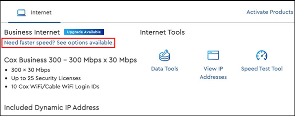 It will ask for userid and password default is adminpassword manual pg 7-8. Cox Business Fiber Internet provides small and medium-sized businesses with even faster upload and download speeds with the reliable connection your business needs. Whether you want to manage bills and payments view and upgrade your services or check up on service appointments its all possible with My Account.