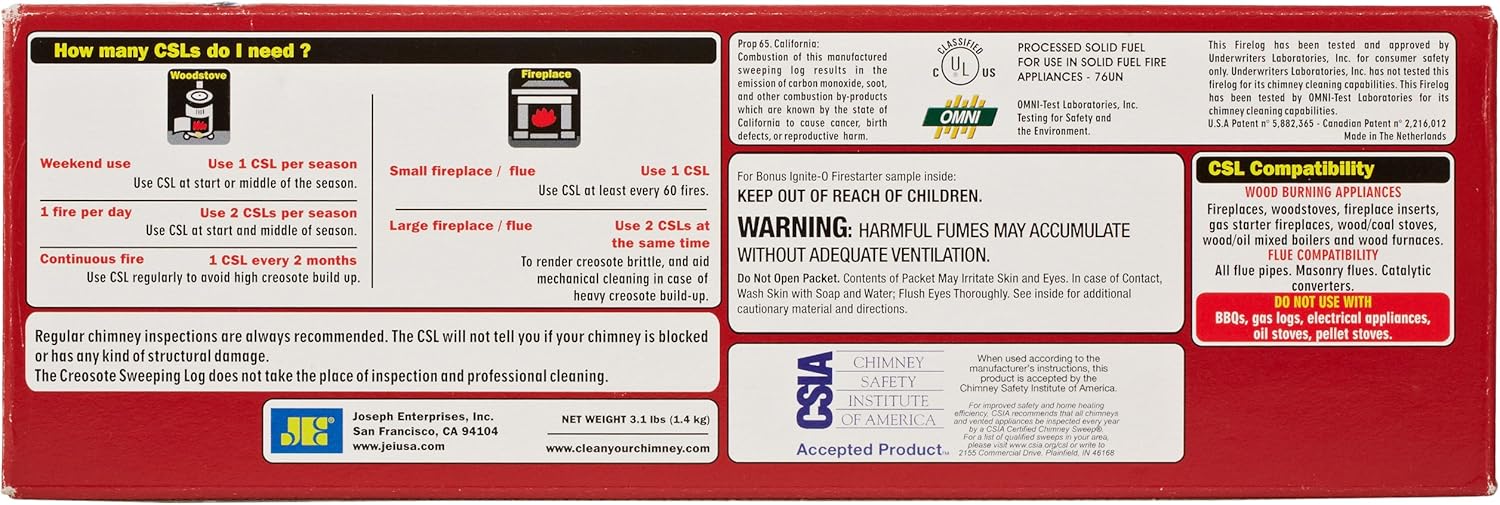 CSL is awarded the Seal of Acceptance. Independent tests indicate that you can reduce up to 70 of the creosote after a single usage. The Creosote Sweeping log treats and reduces existing creosote in your chimney.